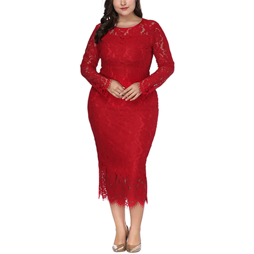 BEST Plus Size Lace Dress Woman Big Size Dresses Fashion Hollow Out Evening Vestidos Elegant Vintage 5xl